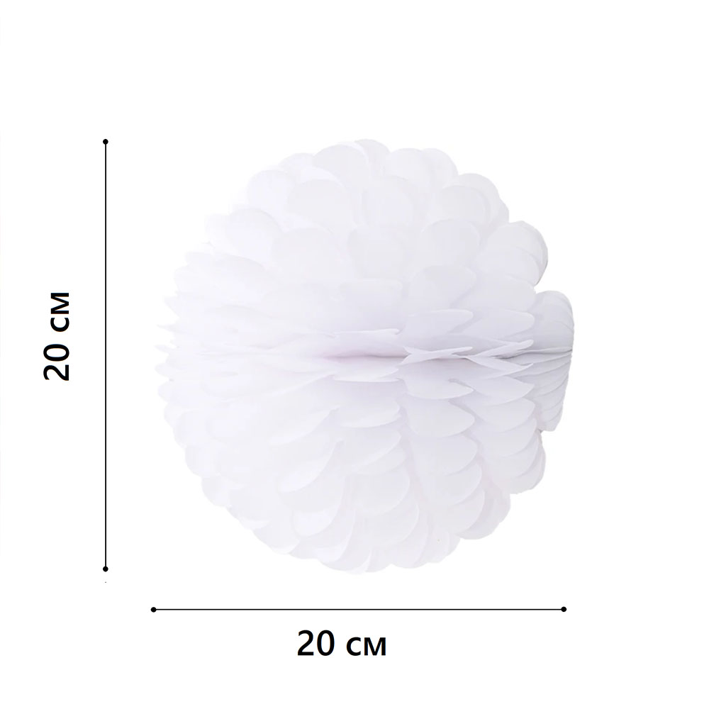 Бумажное украшение Цветочный шар-соты 20 см, белый
