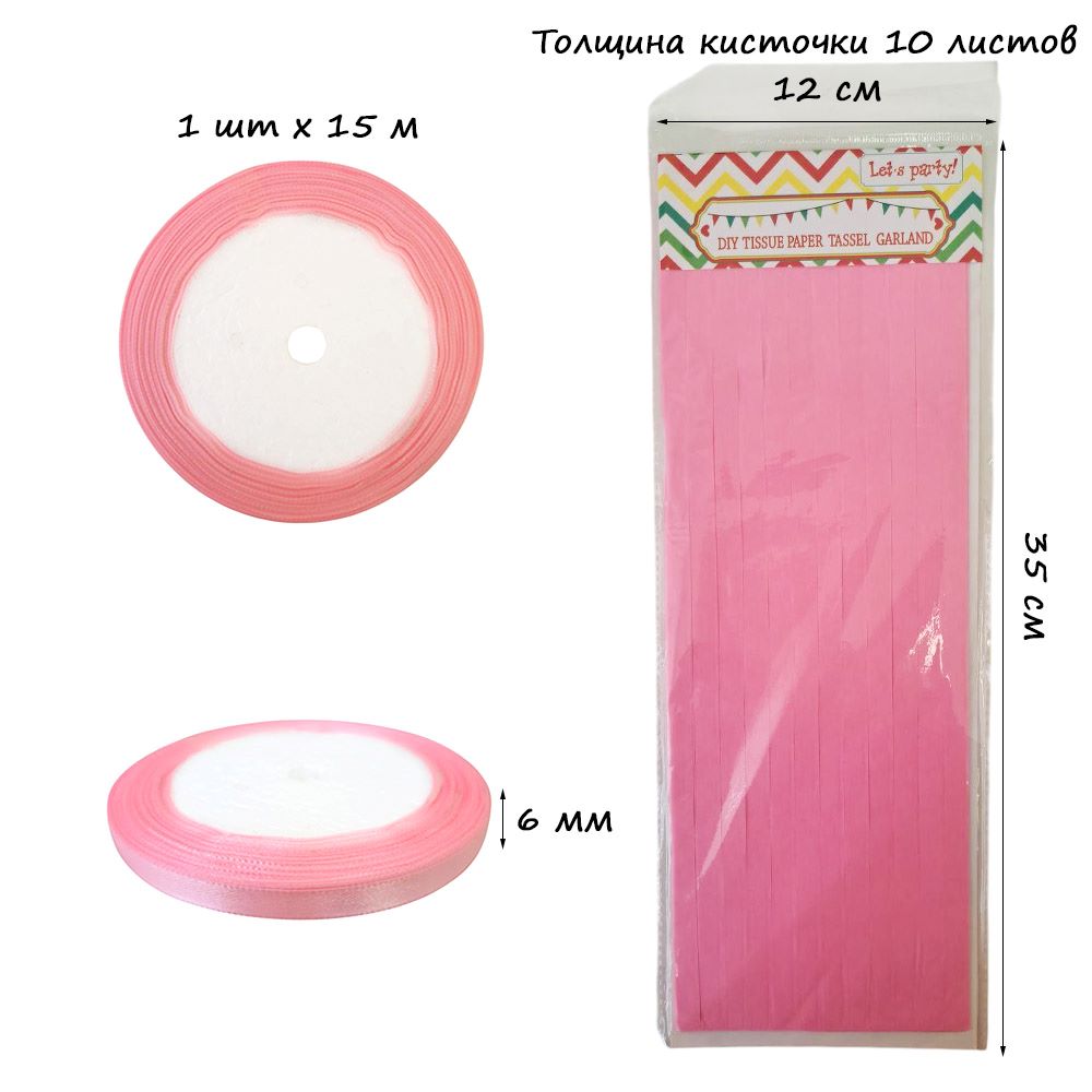 Гирлянда тассел 12 кисточек по 10 листов, розовый