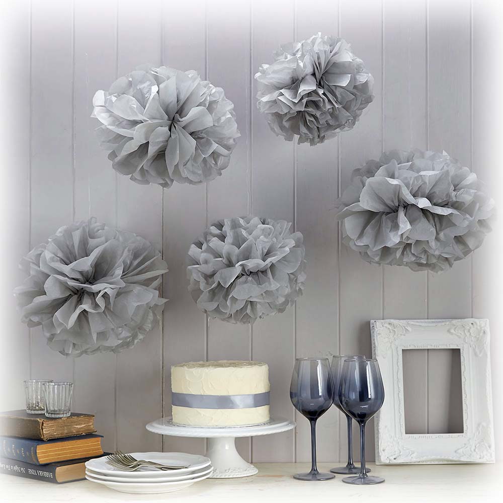 Помпон из бумаги 30 см серебро