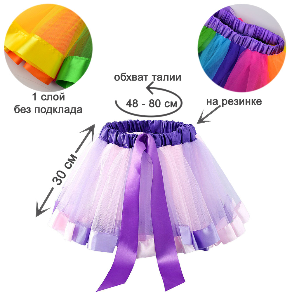 Юбка лёгкая и удобная, мягкий фатин создаёт красивый объём, а эластичный пояс обеспечивает комфортную посадку.